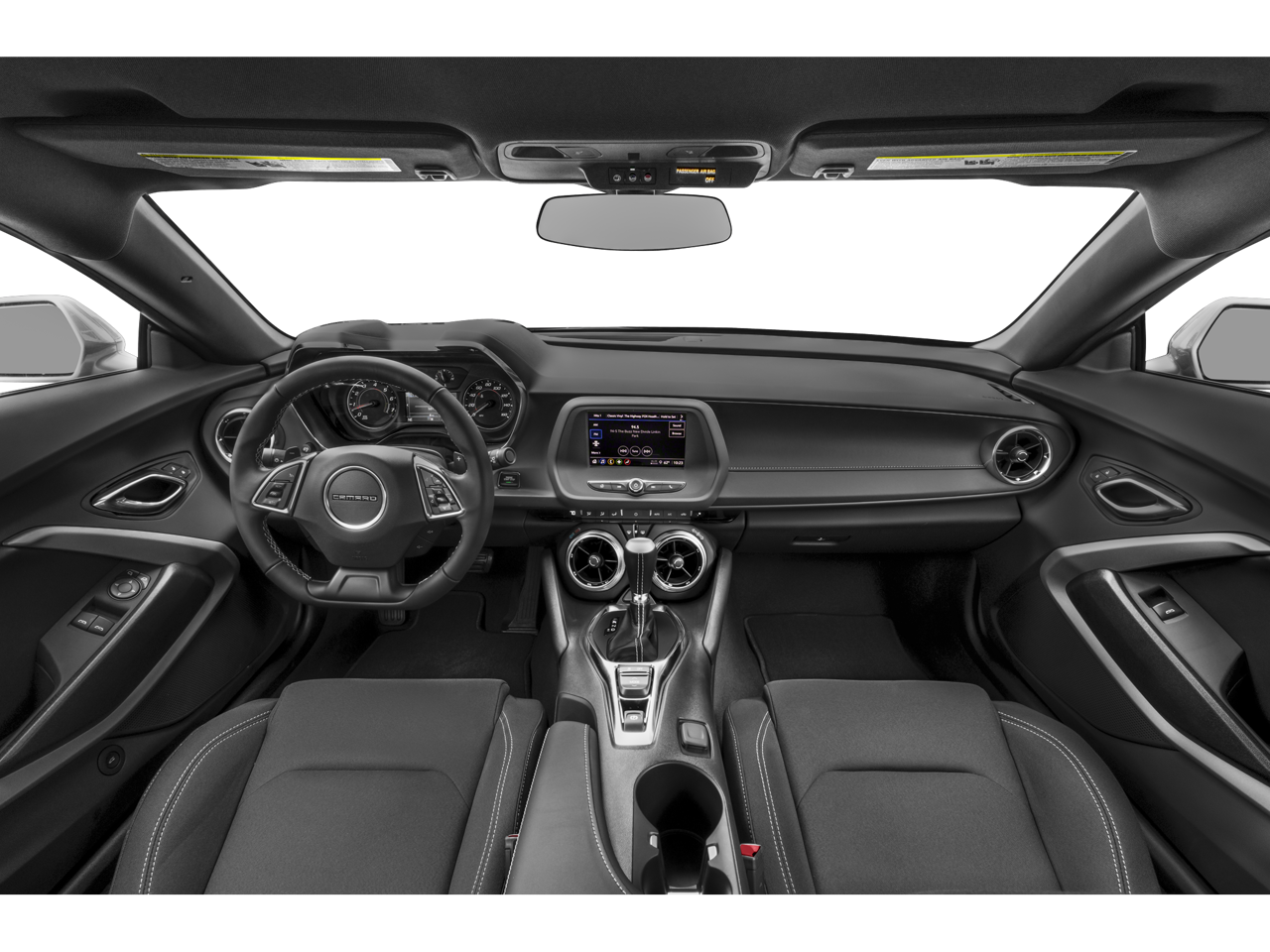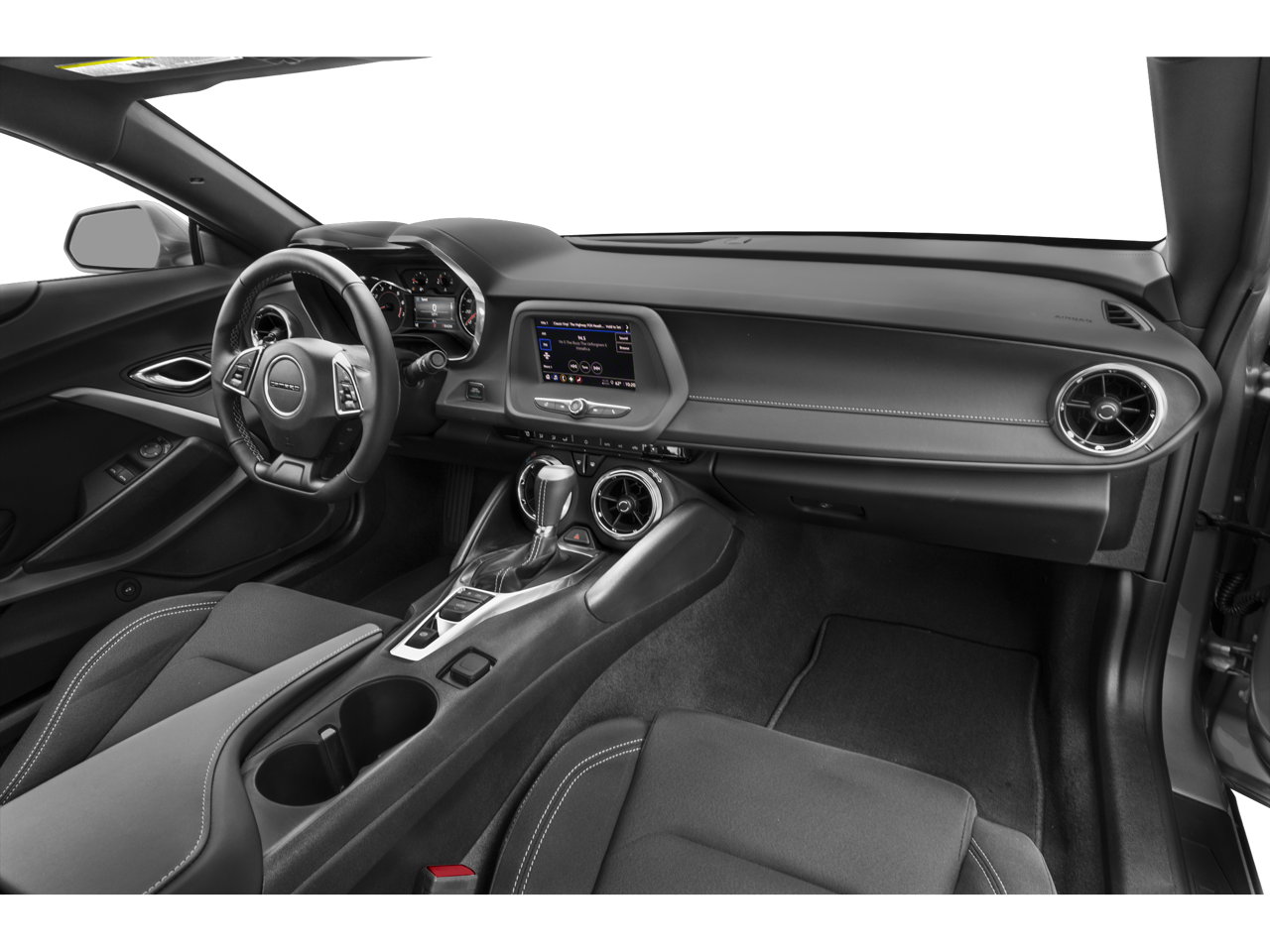18 Silver-Painted Aluminum Wheels, 2.77 Rear Axle Ratio, 4-Wheel Disc Brakes, 6-Way Power Front Passenger Seat Adjuster, 8-Way Power Driver Seat Adjuster, ABS brakes, Air Conditioning, Alloy wheels, Apple CarPlay/Android Auto, Automatic temperature control, Bluetooth® For Phone, Bose Premium 9-Speaker Audio System Feature, Brake assist, Bumpers: body-color, Compass, Dark Tint LED Tail Lamps, Decklid-Mounted Lip Spoiler, Delay-off headlights, Driver door bin, Driver vanity mirror, Dual front impact airbags, Dual front side impact airbags, Electronic Stability Control, Exterior Parking Camera Rear, Four wheel independent suspension, Front anti-roll bar, Front Bucket Seats, Front Center Armrest, Front dual zone A/C, Front License Plate Bracket, Front reading lights, Front Sport Bucket Seats, Fully automatic headlights, Heated Driver & Front Passenger Seats, Heated front seats, Illuminated entry, Knee airbag, Leather Shift Knob, Leather-Trimmed Seat Trim, Low tire pressure warning, Occupant sensing airbag, Outside temperature display, Overhead airbag, Paddle-Shift Manual Controls, Panic alarm, Passenger door bin, Passenger vanity mirror, Power door mirrors, Power driver seat, Power passenger seat, Power steering, Power Sunroof, Power windows, Premium audio system: Chevrolet Infotainment System, Radio data system, Radio: Chevrolet Infotainment 3 Plus System, Rear anti-roll bar, Rear window defroster, Remote keyless entry, Remote Vehicle Starter System, RS Package, Security system, SiriusXM w/360L, Speed control, Speed-sensing steering, Steering wheel mounted audio controls, Tachometer, Telescoping steering wheel, Tilt steering wheel, Tire Inflation Kit, Traction control, Trip computer, Variably intermittent wipers, Ventilated Driver & Front Passenger Seats, Ventilated front seats, Voltmeter, Wheels: 20 5-Split Spoke Black Forged Aluminum.