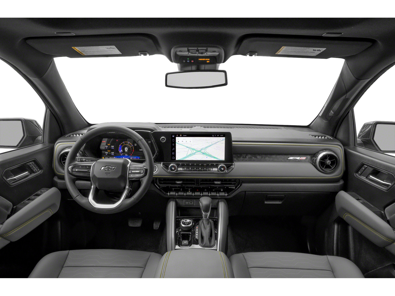 4WD, 3.42 Rear Axle Ratio, 4-Way Manual Passenger Seat Adjuster, 4-Wheel Disc Brakes, 6 Speakers, 6-Speaker Audio System Feature, 8-Way Power Driver Seat Adjuster, ABS brakes, Air Conditioning, Alloy wheels, AM/FM radio: SiriusXM, Apple CarPlay/Android Auto, Auto High-beam Headlights, Auto-dimming Rear-View mirror, Automatic Emergency Braking, Automatic temperature control, Blind Zone Steering Assist w/Trailering, Brake assist, Chevy Safety Assist, Cloth/Evotex Seat Trim, Compass, Delay-off headlights, Driver & Front Passenger Ventilated Seats, Driver door bin, Driver Memory Settings, Driver Seatback Map Pocket, Driver vanity mirror, Dual front impact airbags, Dual front side impact airbags, Electronic Automatic Cruise Control, Electronic Stability Control, Following Distance Indicator, Forward Collision Alert, Front anti-roll bar, Front Bucket Seats, Front Center Armrest, Front dual zone A/C, Front fog lights, Front License Plate Kit, Front Passenger Seatback Map Pocket, Front Pedestrian & Bicyclist Braking, Front reading lights, Front wheel independent suspension, Heated door mirrors, Heated Driver & Front Passenger Seats, Heated front seats, Heated Steering Wheel, Illuminated entry, IntelliBeam Automatic High Beam On/Off, Lane Keep Assist w/Lane Departure Warning, Low tire pressure warning, Navigation System, Occupant sensing airbag, Outside temperature display, Overhead airbag, Overhead console, Panic alarm, Passenger door bin, Passenger vanity mirror, Perforated Leather-Appointed Seat Trim, Power door mirrors, Power Driver Lumbar Control Seat Adjuster, Power driver seat, Power Sliding Glass w/Manual Shade Sunroof, Power steering, Power windows, Preferred Equipment Group 4ZR, Radio data system, Radio: 11.3 Diagonal Advanced Color LCD Display, Rear Center Armrest, Rear Cross Traffic Braking, Rear Park Assist, Rear reading lights, Rear step bumper, Rear window defroster, Rear-Window Electric Defogger, Remote keyless entry, Safety Package, Security system, SiriusXM Radio, Speed control, Speed-sensing steering, Split folding rear seat, Steering Wheel Mounted Audio Controls, Steering wheel mounted audio controls, Tachometer, Telescoping steering wheel, Tilt steering wheel, Traction control, Trip computer, Variably intermittent wipers, Wheels: 17 x 8 Graphite & Oxide Gold Aluminum, Wireless Charging, Wireless Phone Projection, ZR2 Convenience Package III, ZR2 Off-Road Package, 4WD.